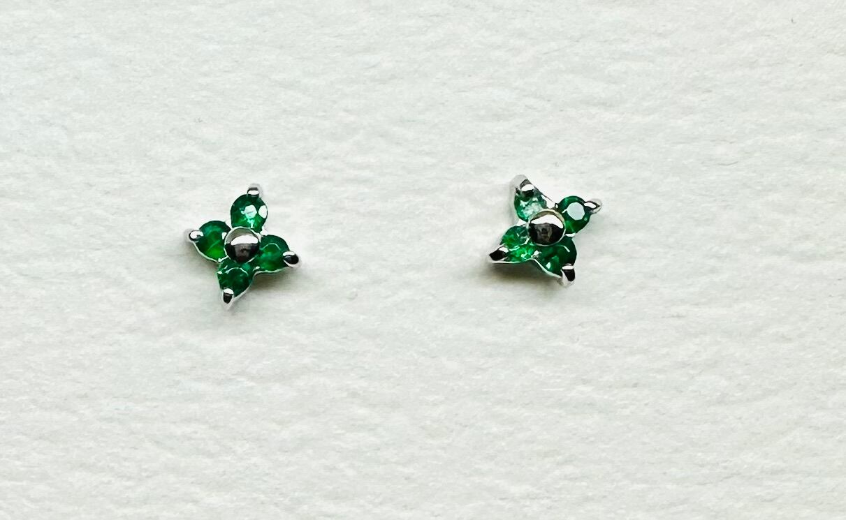 とても小さなお花のピアスに大人気のエメラルドを使用しました。