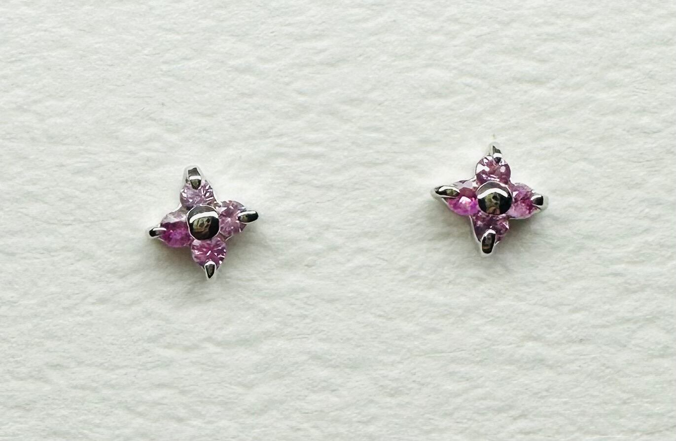 とても小さなお花のピアスに希少なピンクサファイヤを使用しました。