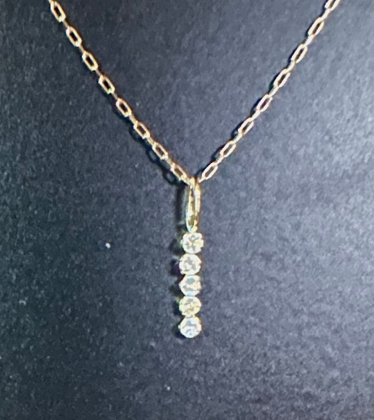 K18 1.5ミリ5連のペンダントトップにブルームーンストーンを使用しました。