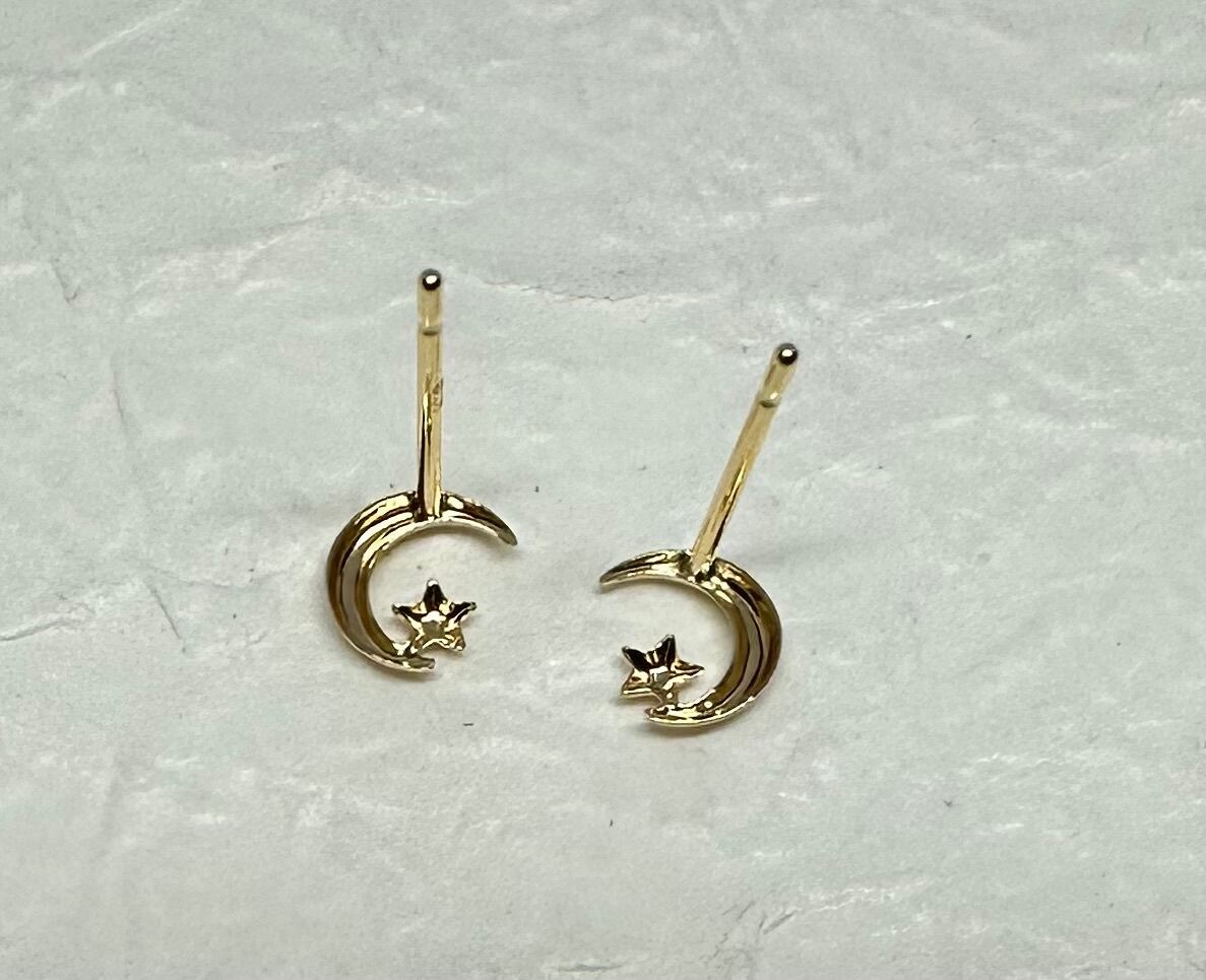【K18】月と星の地金ピアス!小ぶりで可愛いピアスです