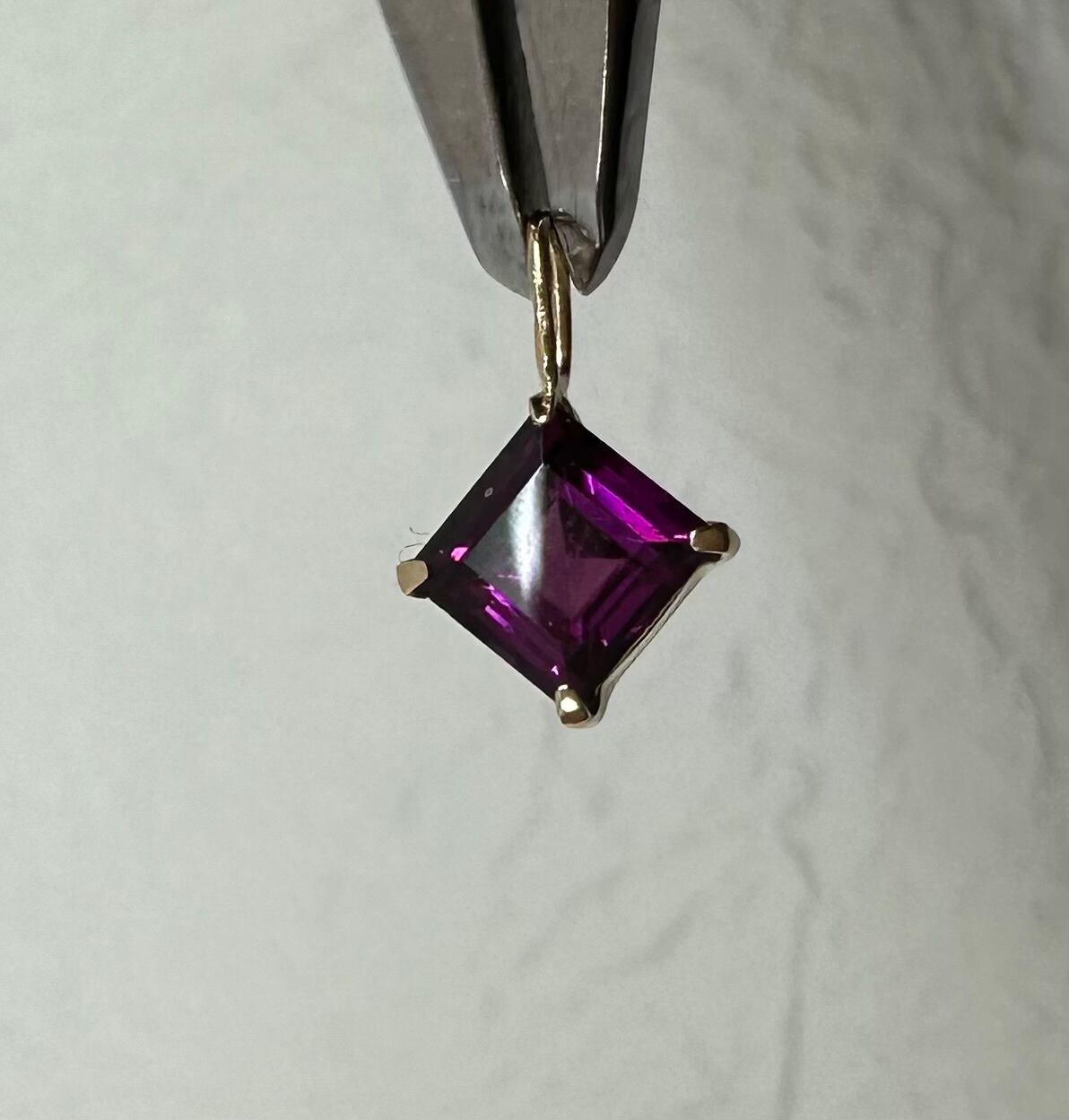 K18 5x5角のペンダントトップに華やかなロードライトガーネを使用しました。
