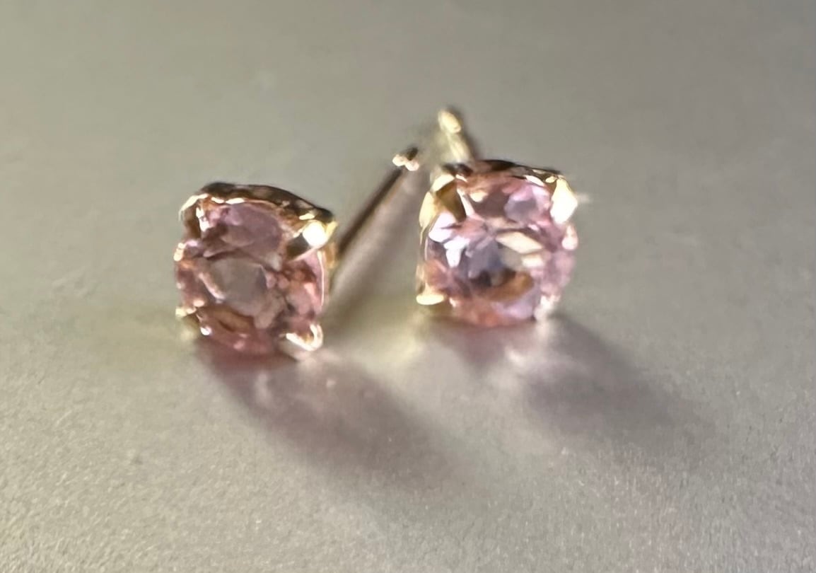 【K18】4ミリのスタッドピアス♩桜色が可愛い希少石のモルガナイトを使用!