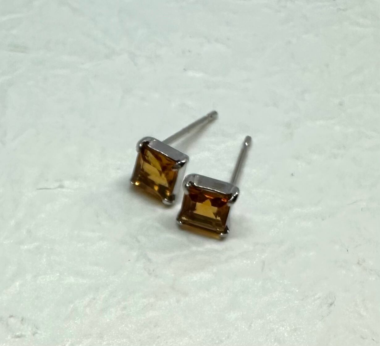 【PT900】4角のピアスに金運UPのシトリンを使用!