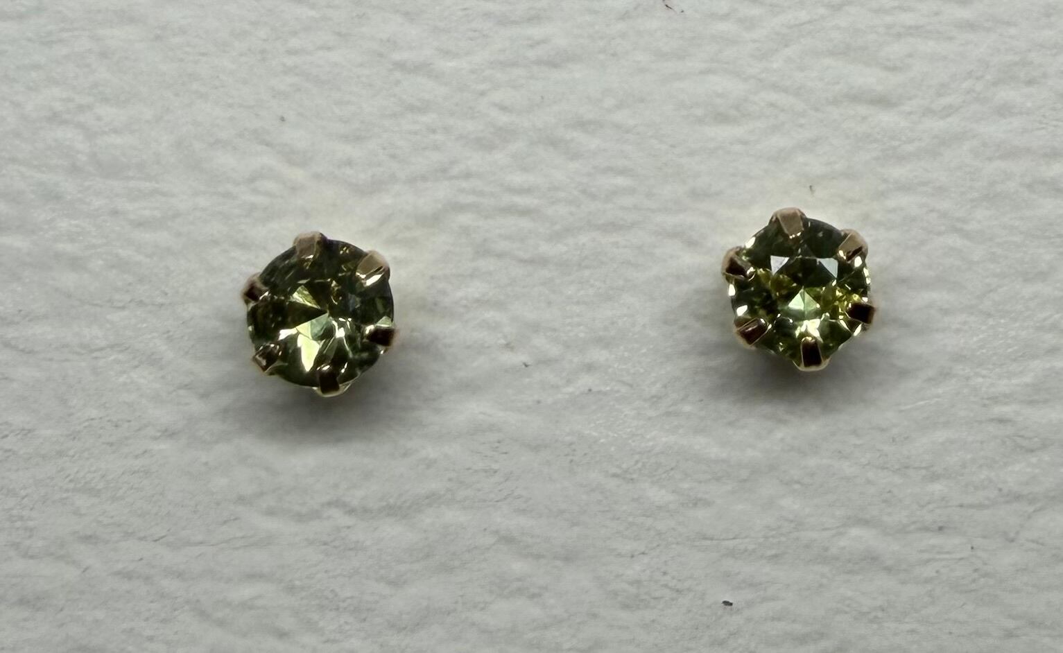 【K18】3ミリのスタッドピアス♩オリーブグリーンなサファイヤを使用!