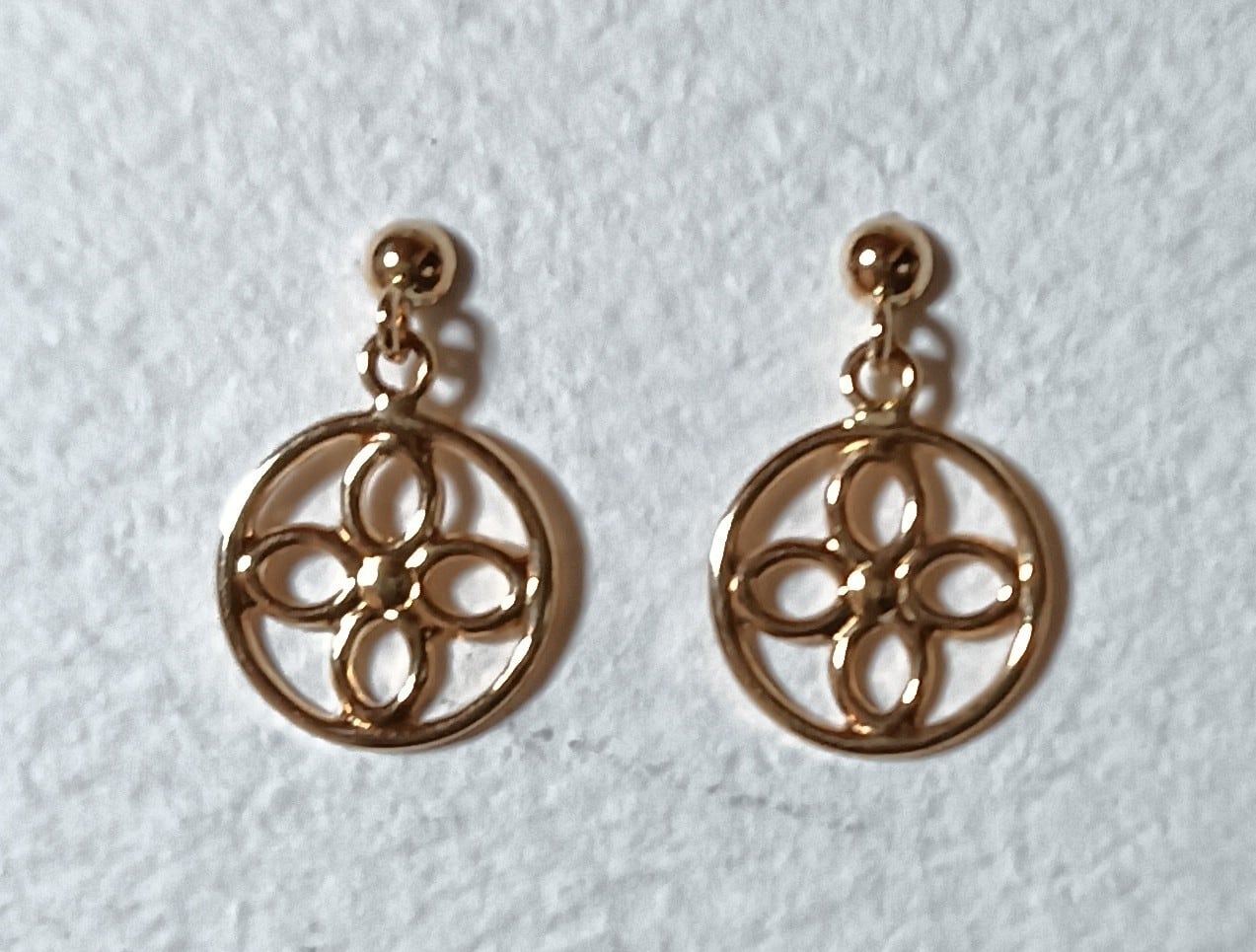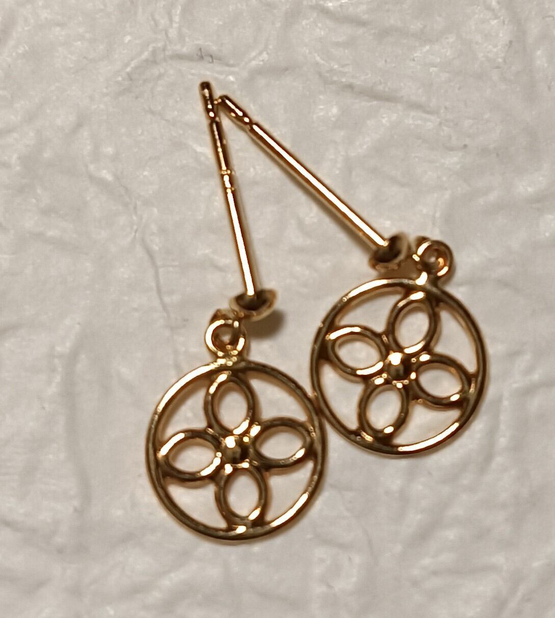 お花のような、幾何学模様のような、昭和レトロのような、なんとも愛らしいピアスです。