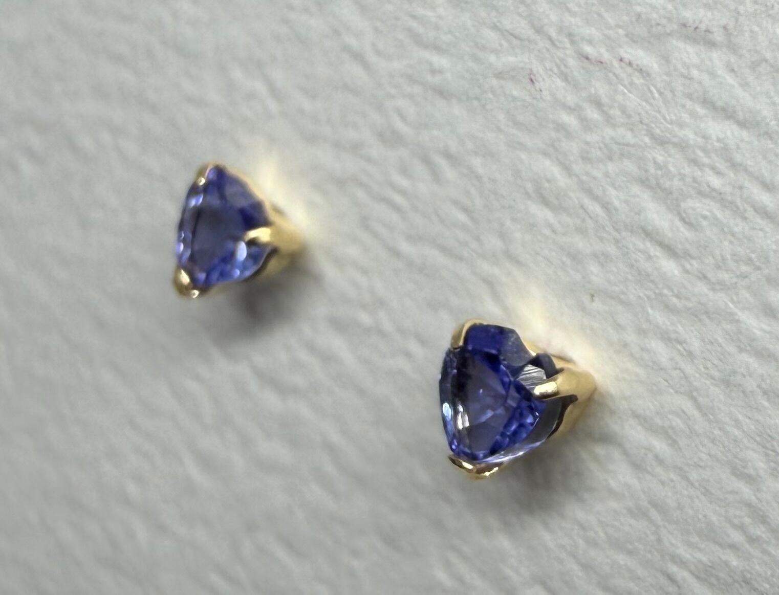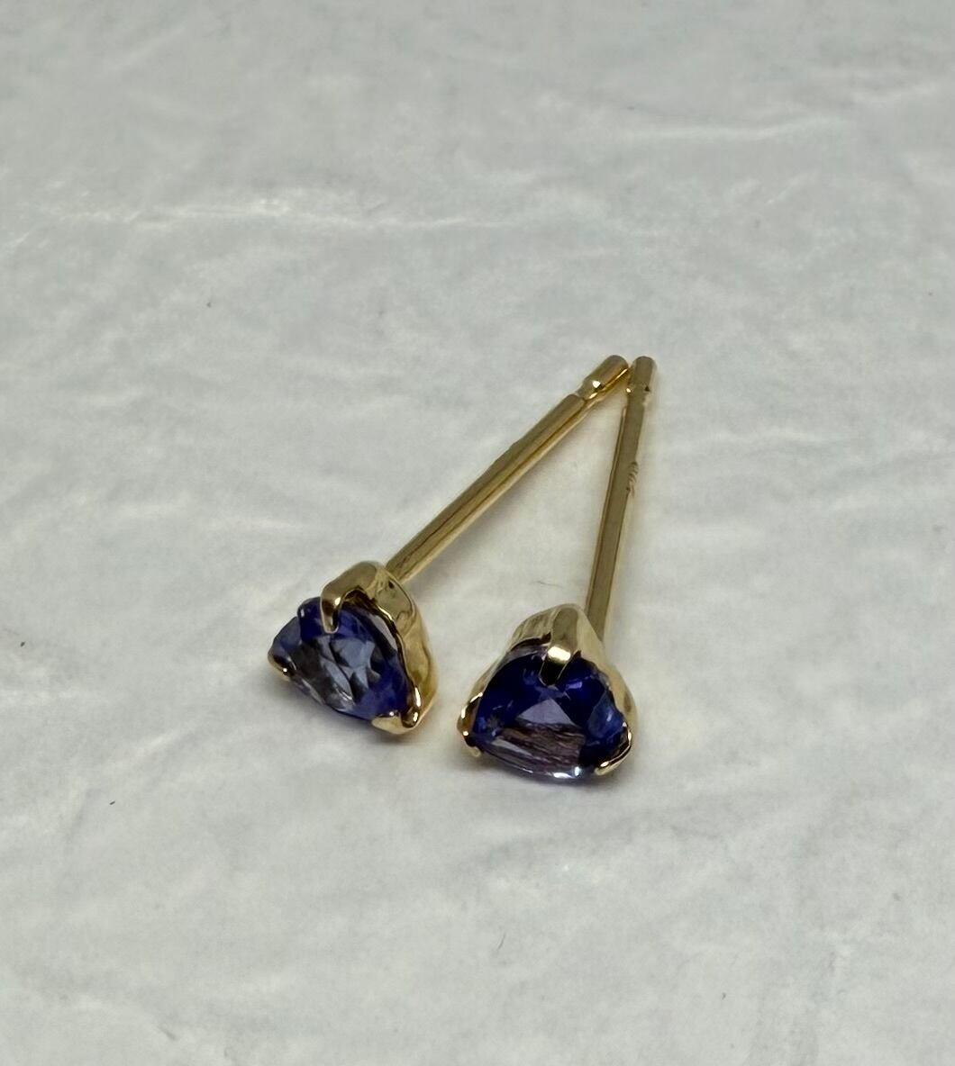 K18 3ミリハートのピアスに大人気のタンザナイトを使用しました。
