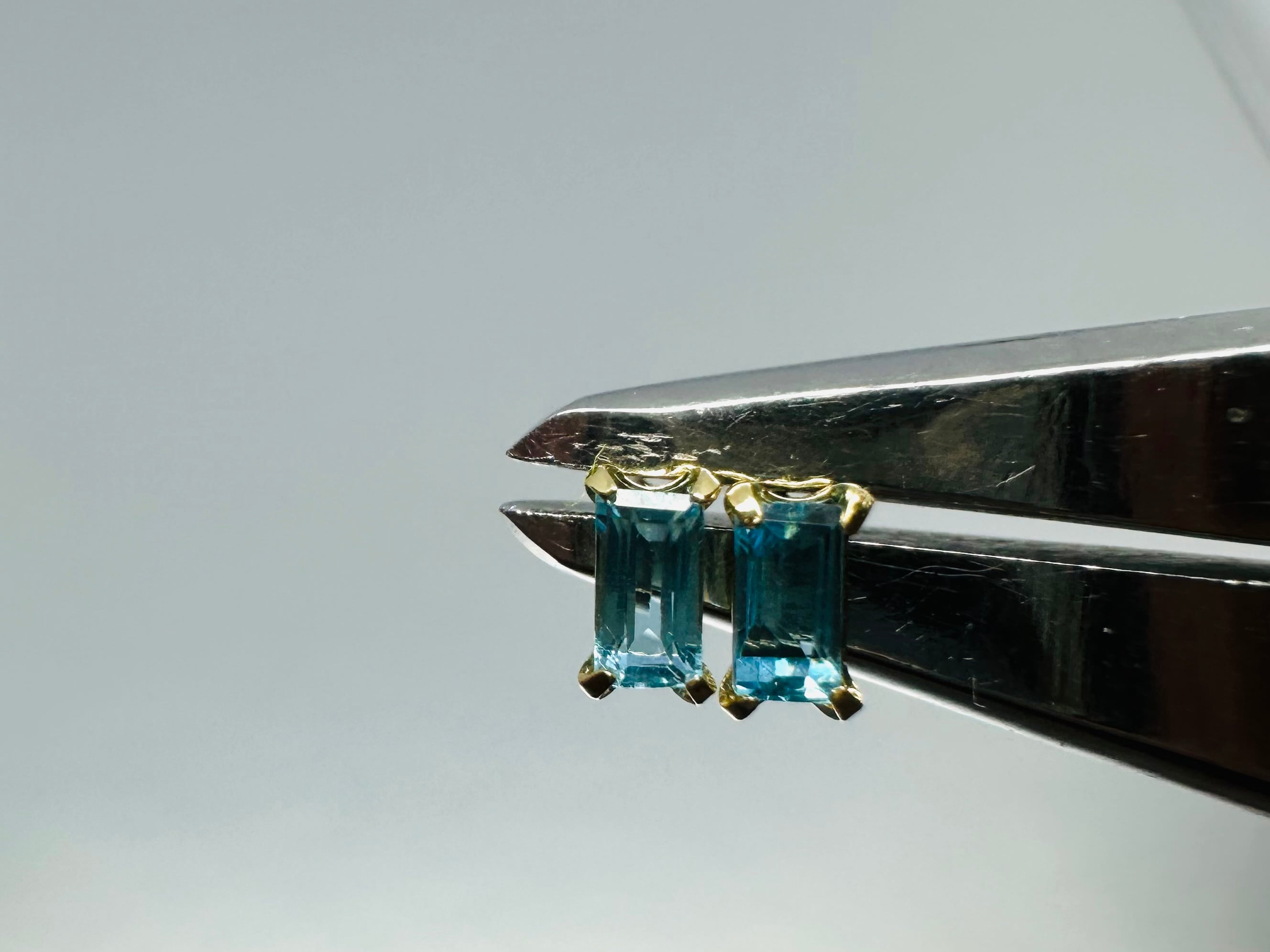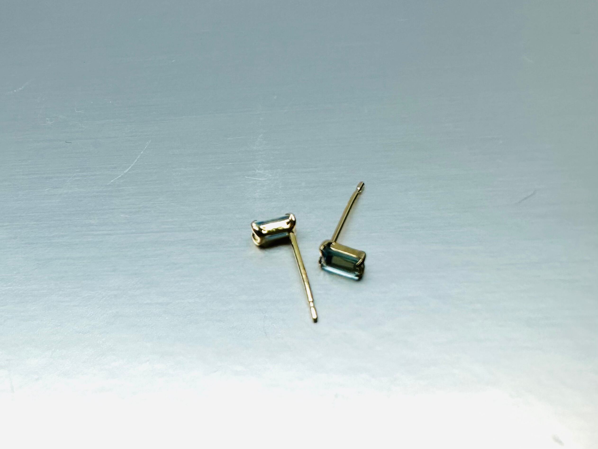 K18 2x4角という珍しい形のブルートパーズピアスです。