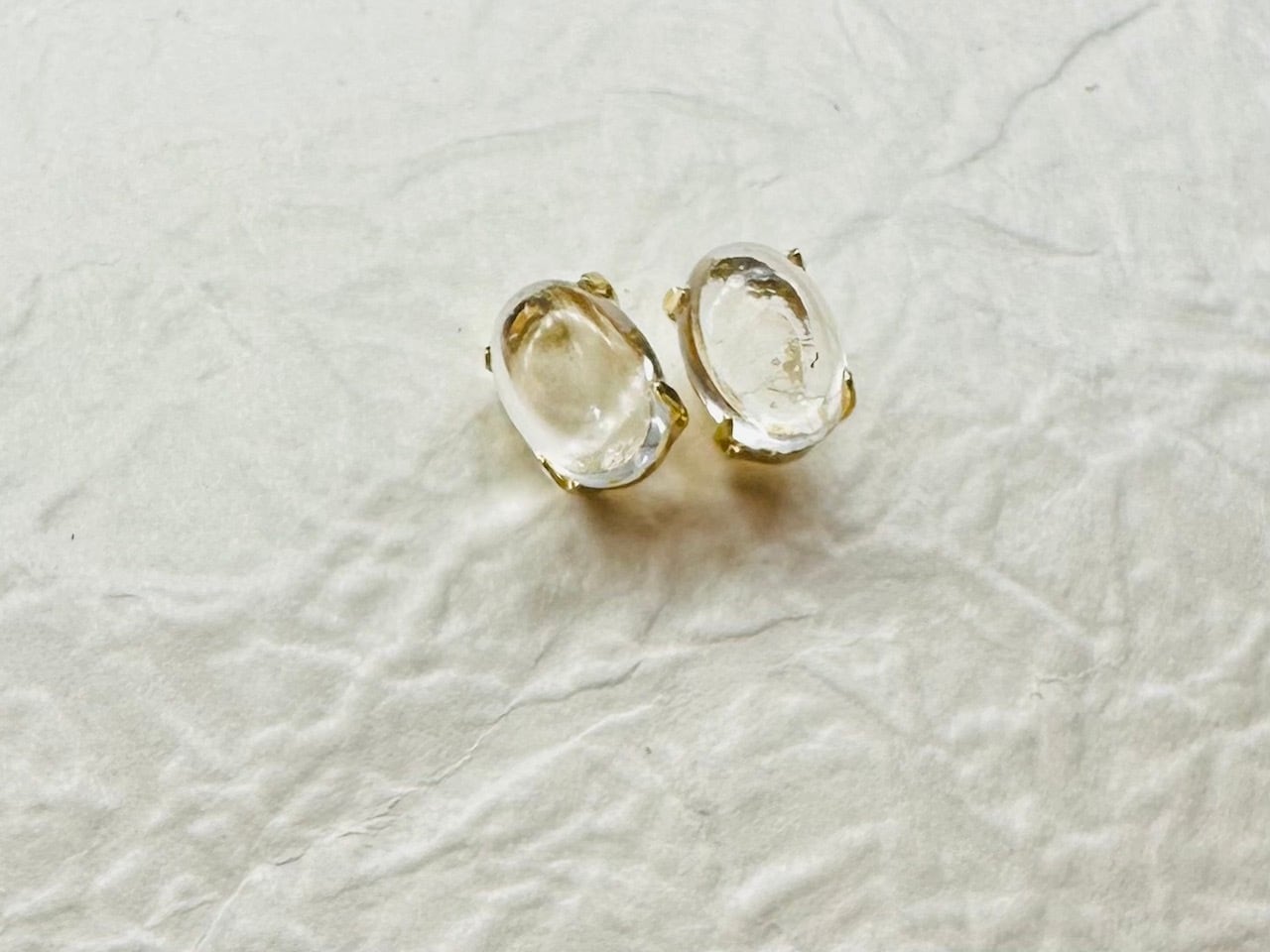 K18 4x6オーバルピアス 希少石のハイアライトオパールを使用!