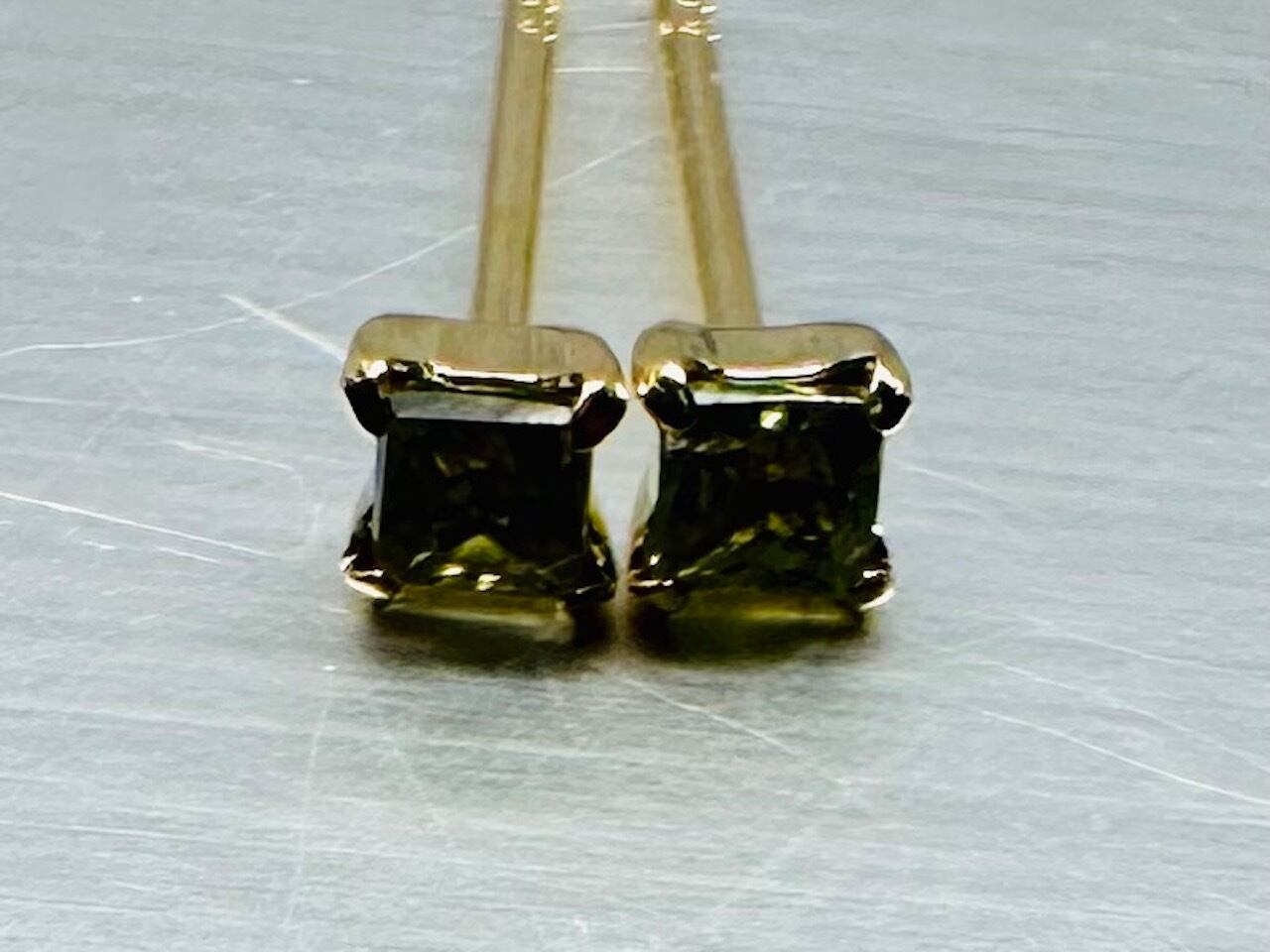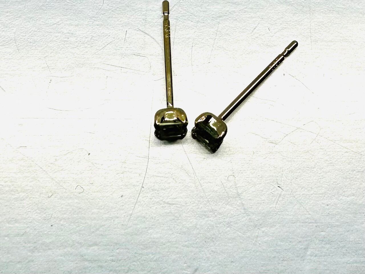 K18 2x2角のピアス!数少ないグリーンサファイヤを使用