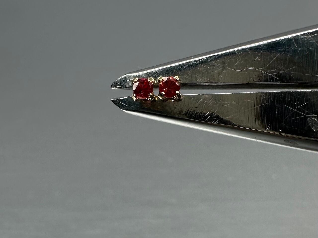 K18 2ミリピアス レッドスピネルが可愛く光ります!