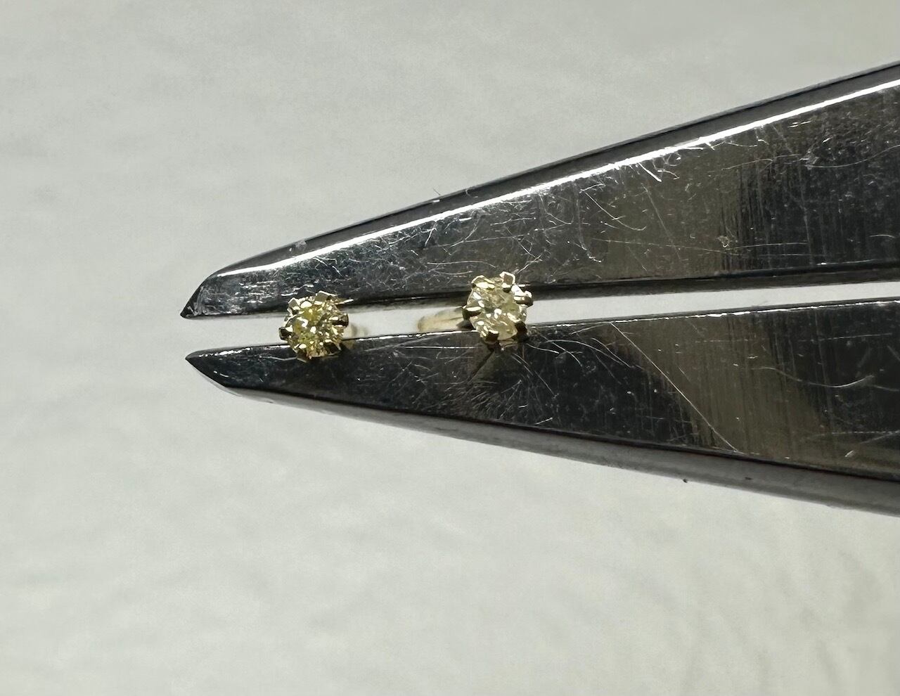 小さいながらも存在感抜群のK18 片側0.02ctダイヤを使用したピアス。