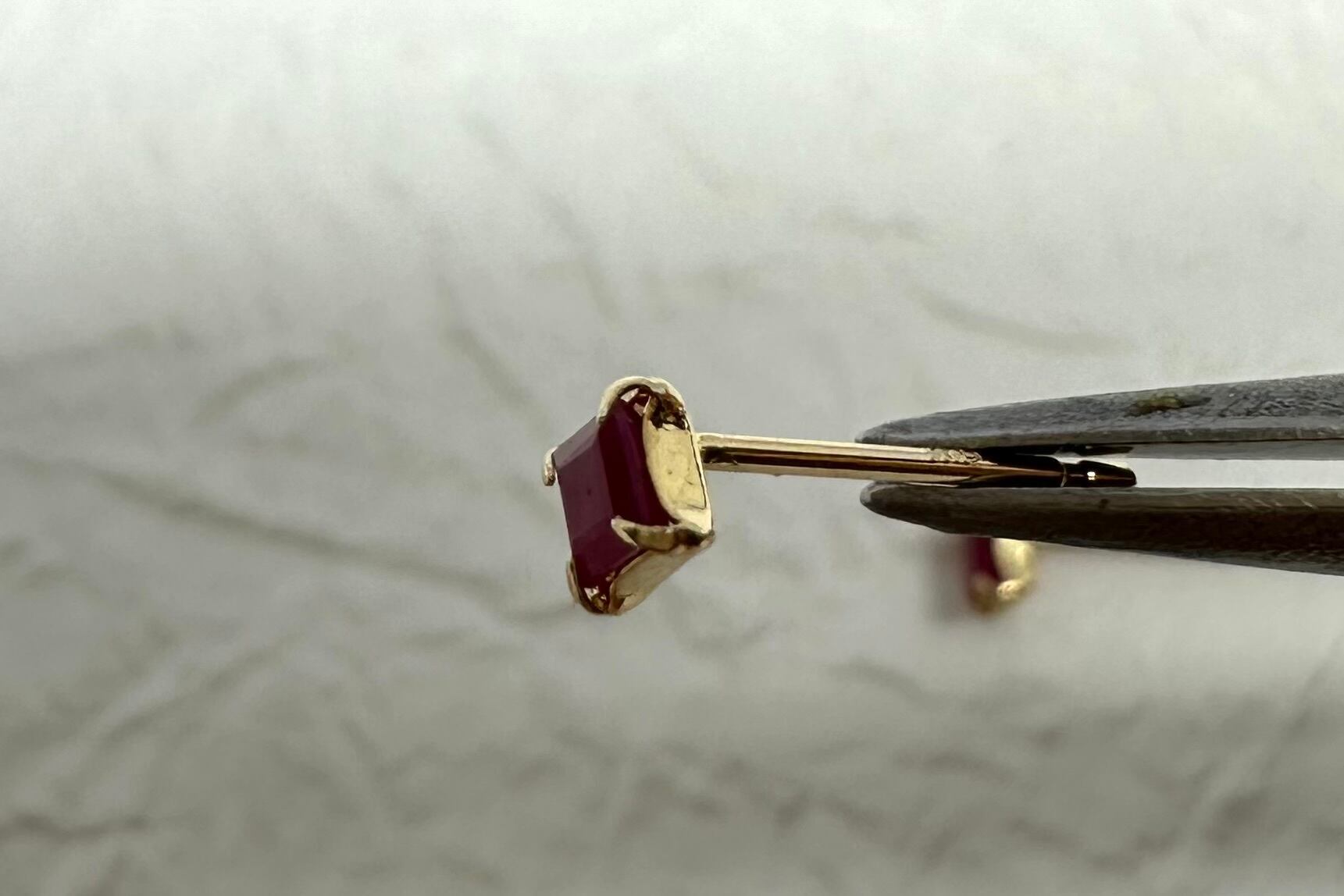 華やかさと上品さを兼ね備えたルビーを使用したK18 2.5角のピアス♪